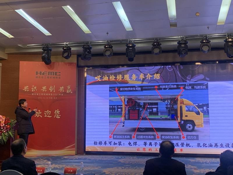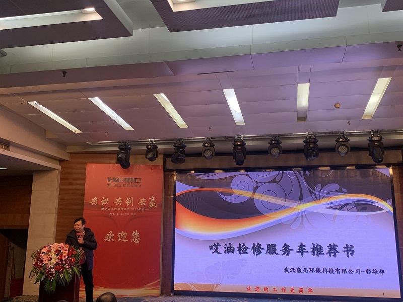 会中,武汉森美环保科技有限公司总经理郭雄华,向与会人员介绍了“哎油检修服务车”项目,并重点就检修服务车七大功能分别做了详细阐述。会后,实地参观了解换油车功能。